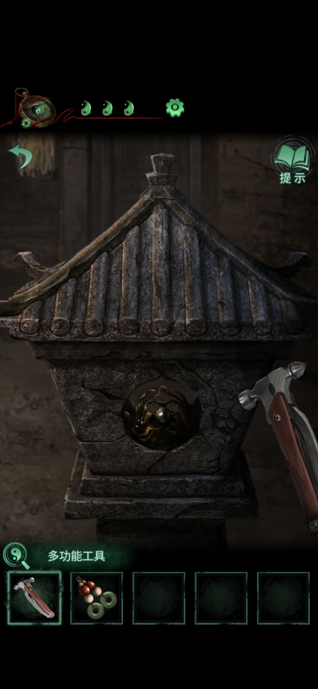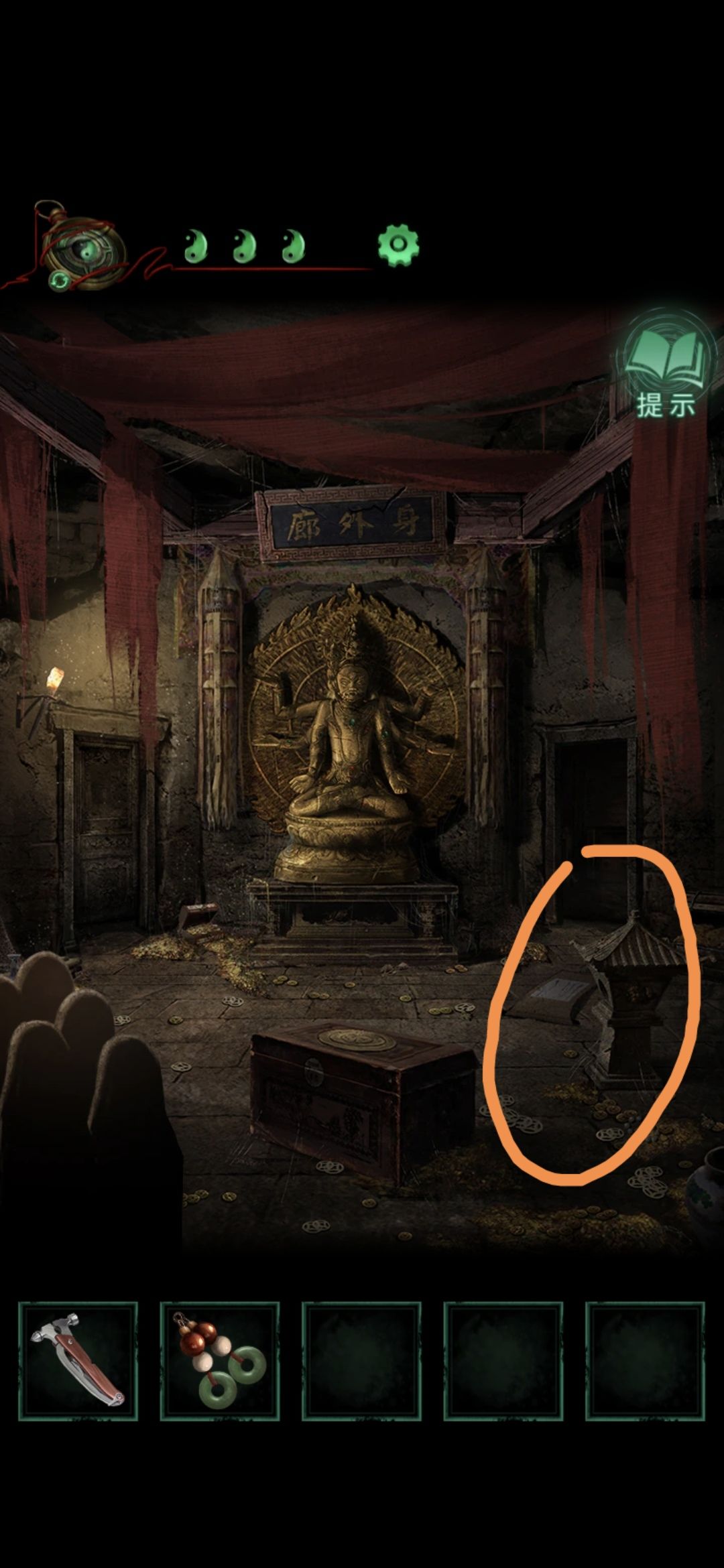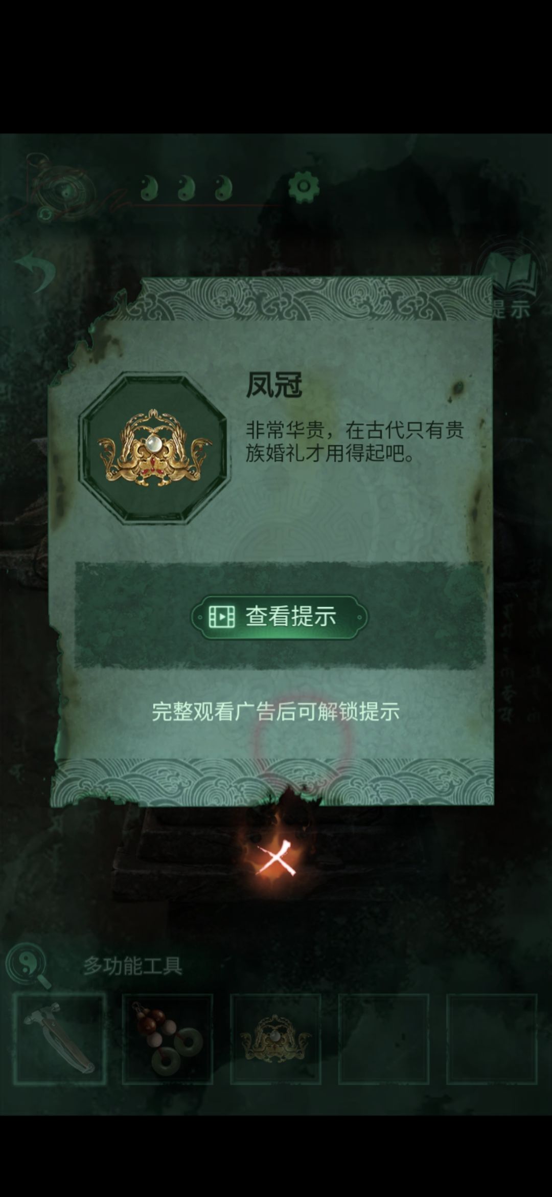打开男主视角,点击左下方的香炉,用多功能工具敲开香炉,获取凤冠