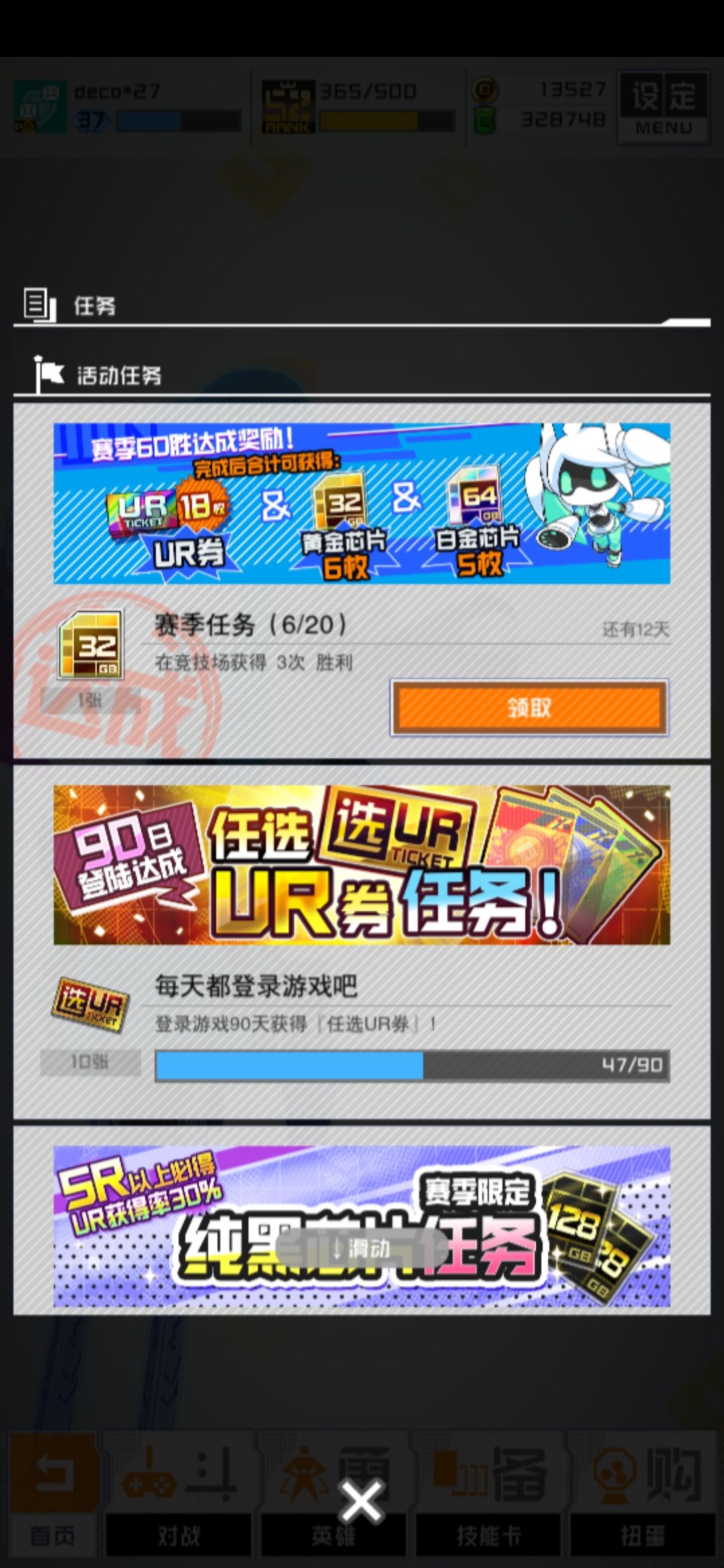 关于任务奖励,希望能换掉32G,卡槽真的不够。想要UR卷,而且赛季初还想留卡槽打128呢。换成能量罐等都行吧?