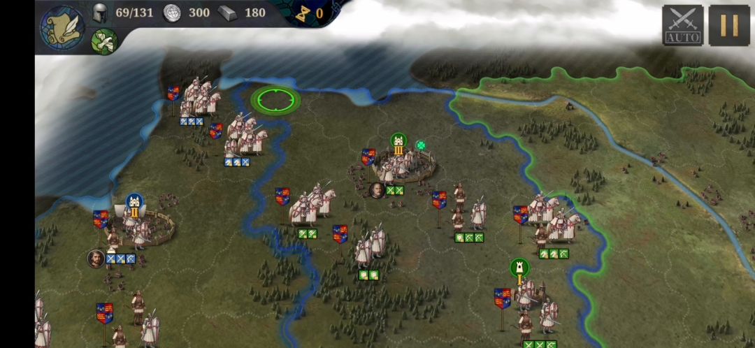 2.占领两个黄圈城后,右上角三级城堡变为我方单位