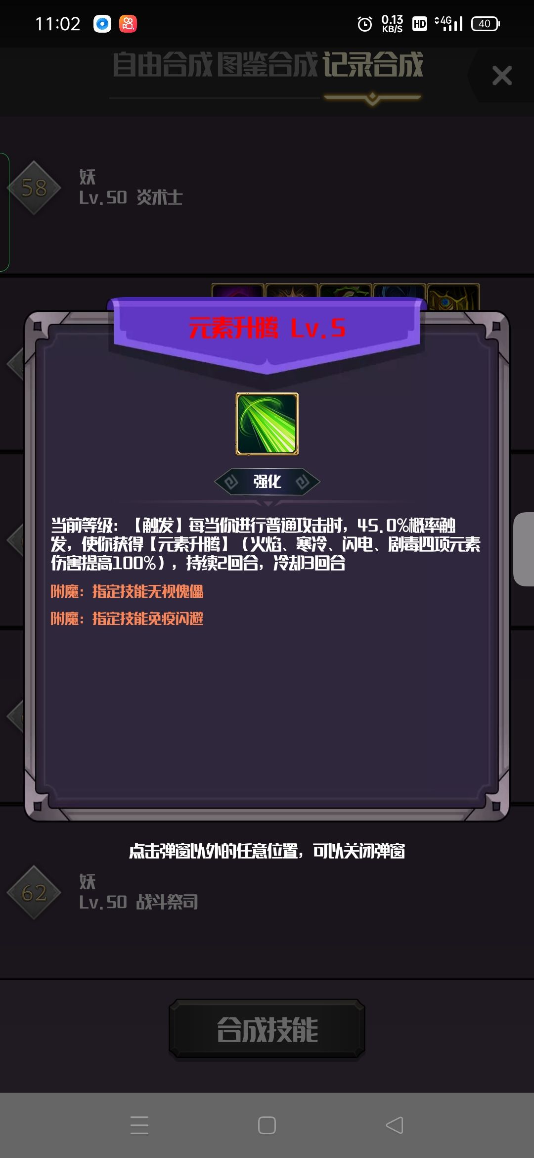最后是技能,大家都打无尽模式了,就不用我介绍怎么合成了吧,都是冒险毕业的大佬了。