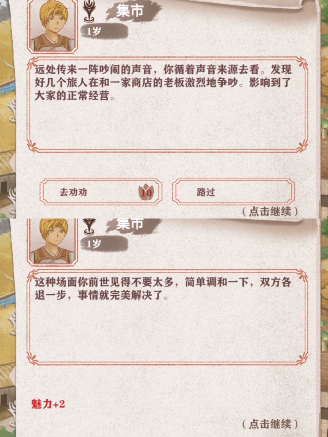 12.两个商人吵架,需要10魅力值,+2魅力。