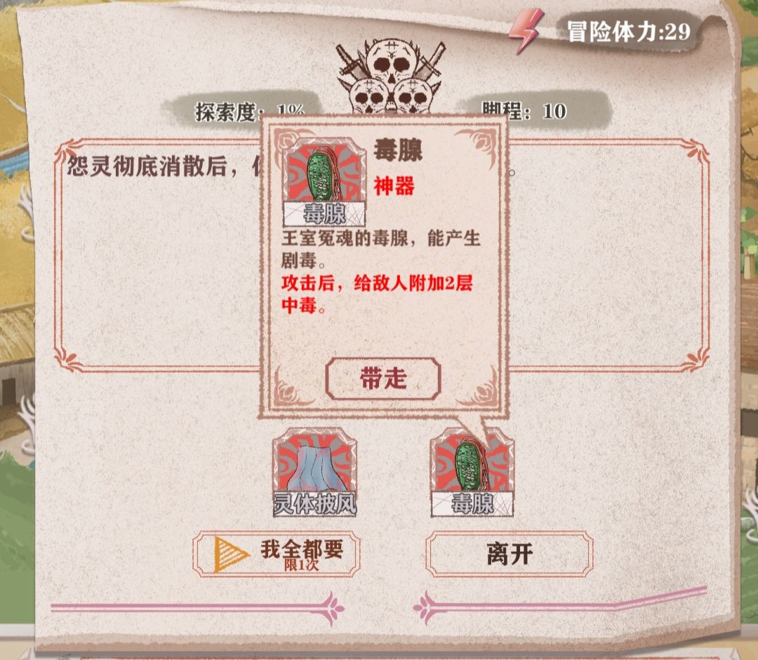 2.毒腺:每次攻击能附加2点中毒(夏洛蒂不算)