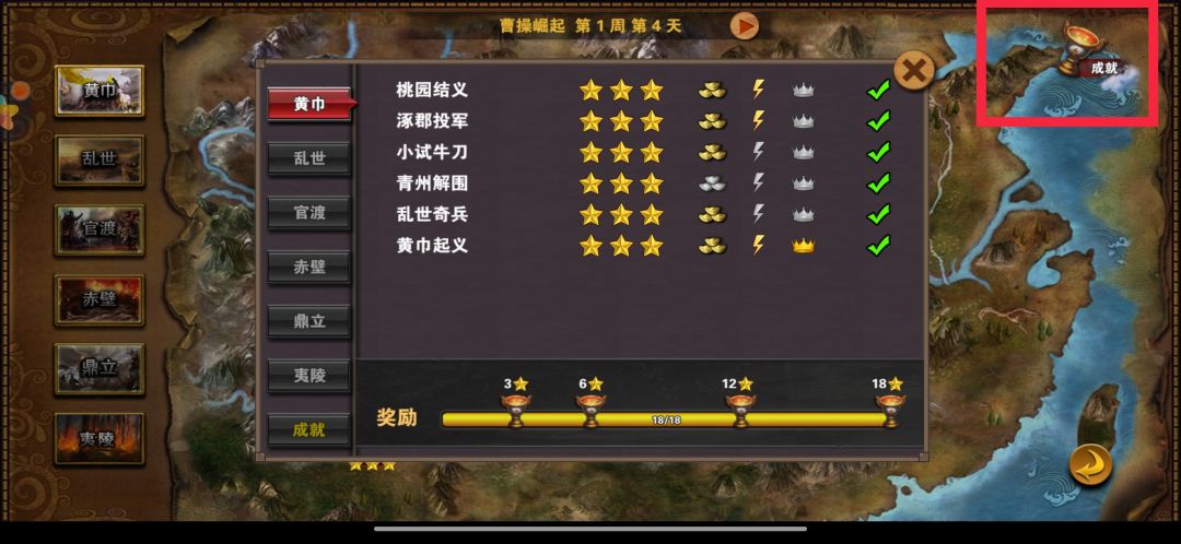 点开“剧情战役”会显示这个界面,右上角有个成就,地图怎么打是三星等都有详细说明