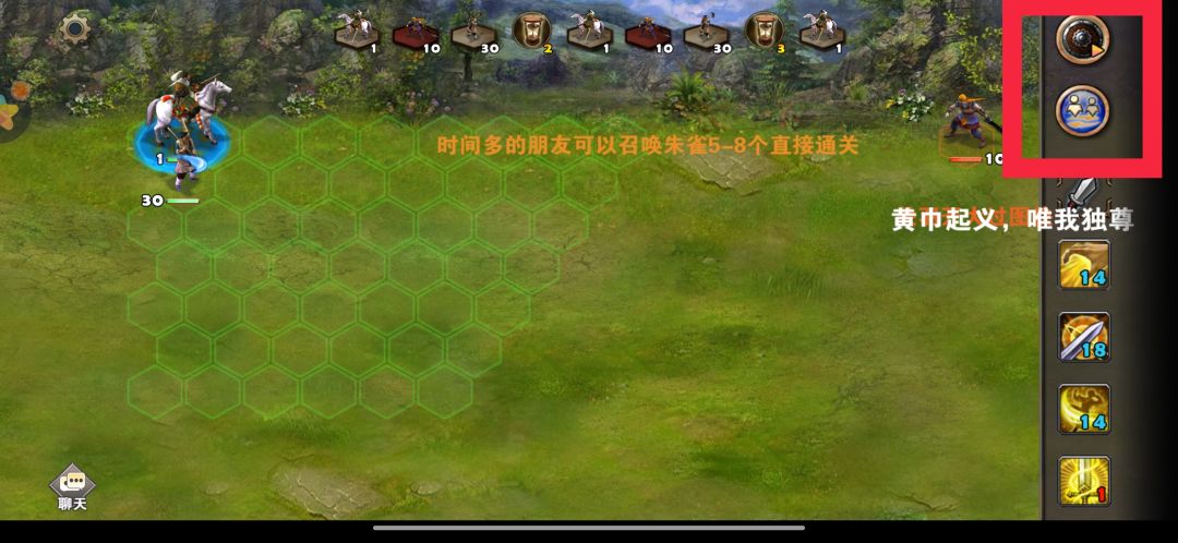 有两个小人一样的图标是指当前回合“后动”,简单的说就像这张图里一样刘备现在打不到这个小兵我们就点下后动图标等小兵走过来,我们在发动攻击(你过来啊我让你先动手。)