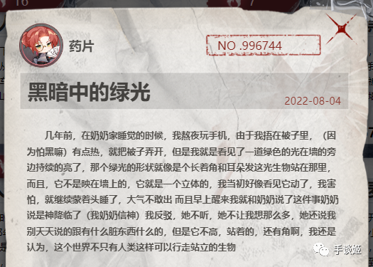 另外不同于一般游戏,官网上全都是资讯或者介绍一类的,这游戏的官网上居然有网友们投稿的一封封都市怪谈,在中元节这天读怪谈真的是超级应景,都市怪谈竟然真的在我身边?但是不得不说,这也是极符合《黑猫奇闻社》基调的,毕竟游戏里也是发生在生活中的都市传闻。这代入感,啧啧啧!随手截了几个投稿,大家品品。