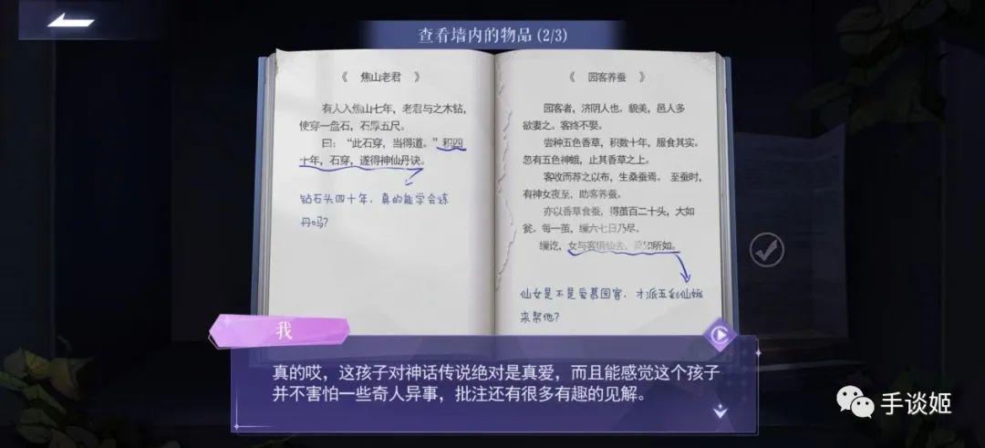 随着女主角调查的深入,白狐儿的身份一会儿明晰,一会儿又模糊。洋房墙里暗藏着古代怪志小说《十洲记》,施工现场则遗留一本孩子的日记。玩家们要在这些道具上找寻蛛丝马迹。