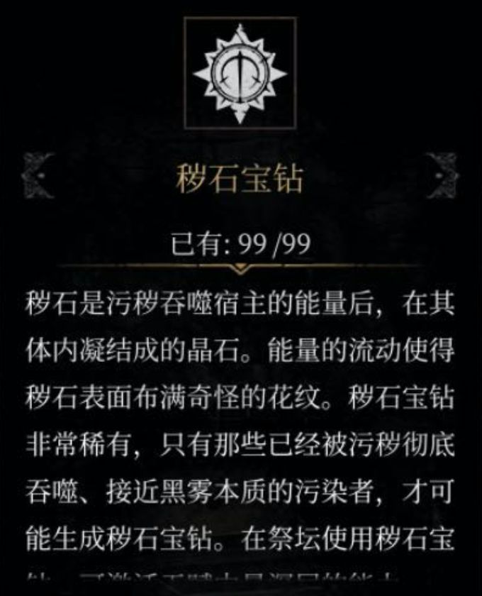 最稀有的秽石是秽石宝钻有着和教会纹章相似的形态,但还是存在很差别,原本我以为这两个只是设计上出现类似的同质化,但仔细看在我们点天赋的那一栏的图标,使用的却是教会纹章的图案。