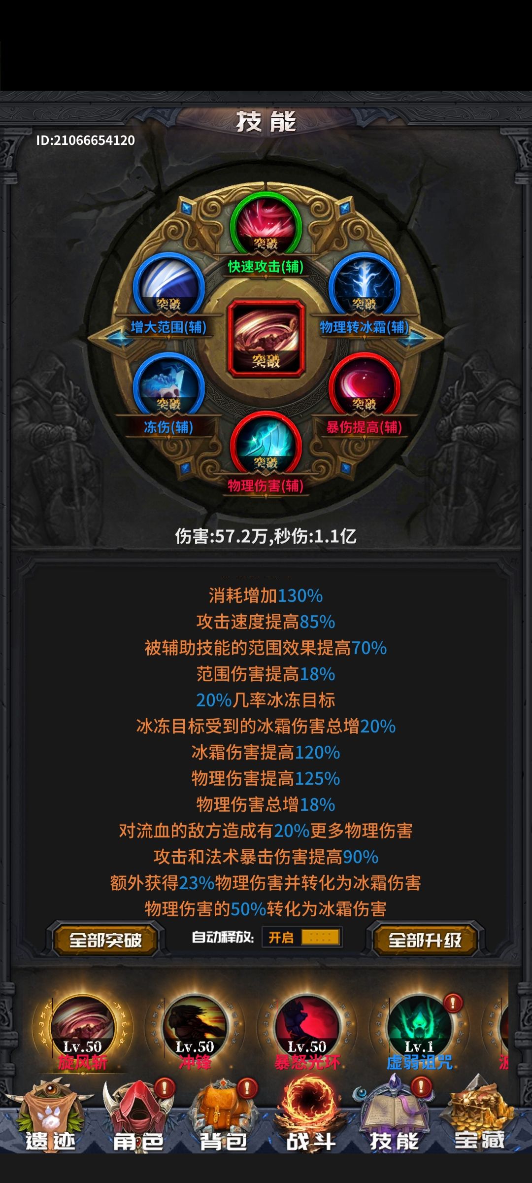 可攻可守,1.1亿的秒伤,3.5W血量,无广告加成,Boss和高级图可以换抗性光环,115级就可以毕业了。衣服堆的是血量还有一个伤害减免很好用。这游戏太简单了。