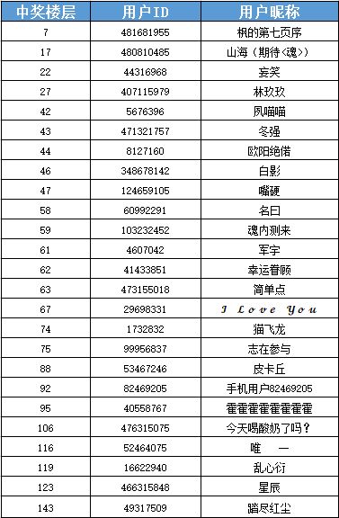 经8月18日12:15抽奖后,中奖名单如下(抽奖视频已上传QQ官方频道):