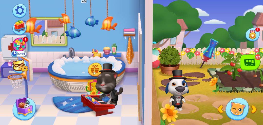 在《汤姆猫总动员》游戏里,小伙伴们可以在汤姆猫家族他们家里找到各种各样的玩具器材,比如足球、篮球,吉他、电麦克风,天文望远镜、显微镜,以及泰迪熊公仔等等。所以无论小伙伴们拥有什么样的兴趣爱好,几乎都可以在这里与汤姆猫他们一起发展培养,享受到共同进步的乐趣!