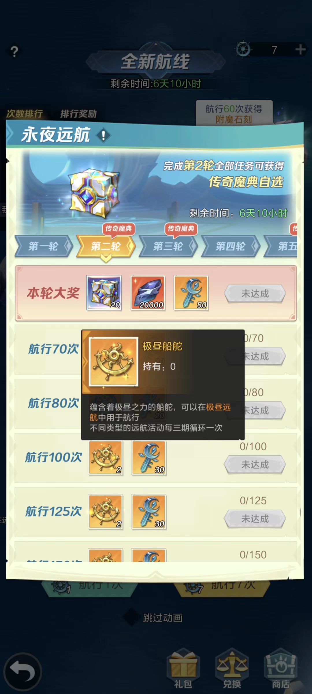 挑战即消耗船舵进行航行,航行一定次数有轮次奖励,已经整理出来了: