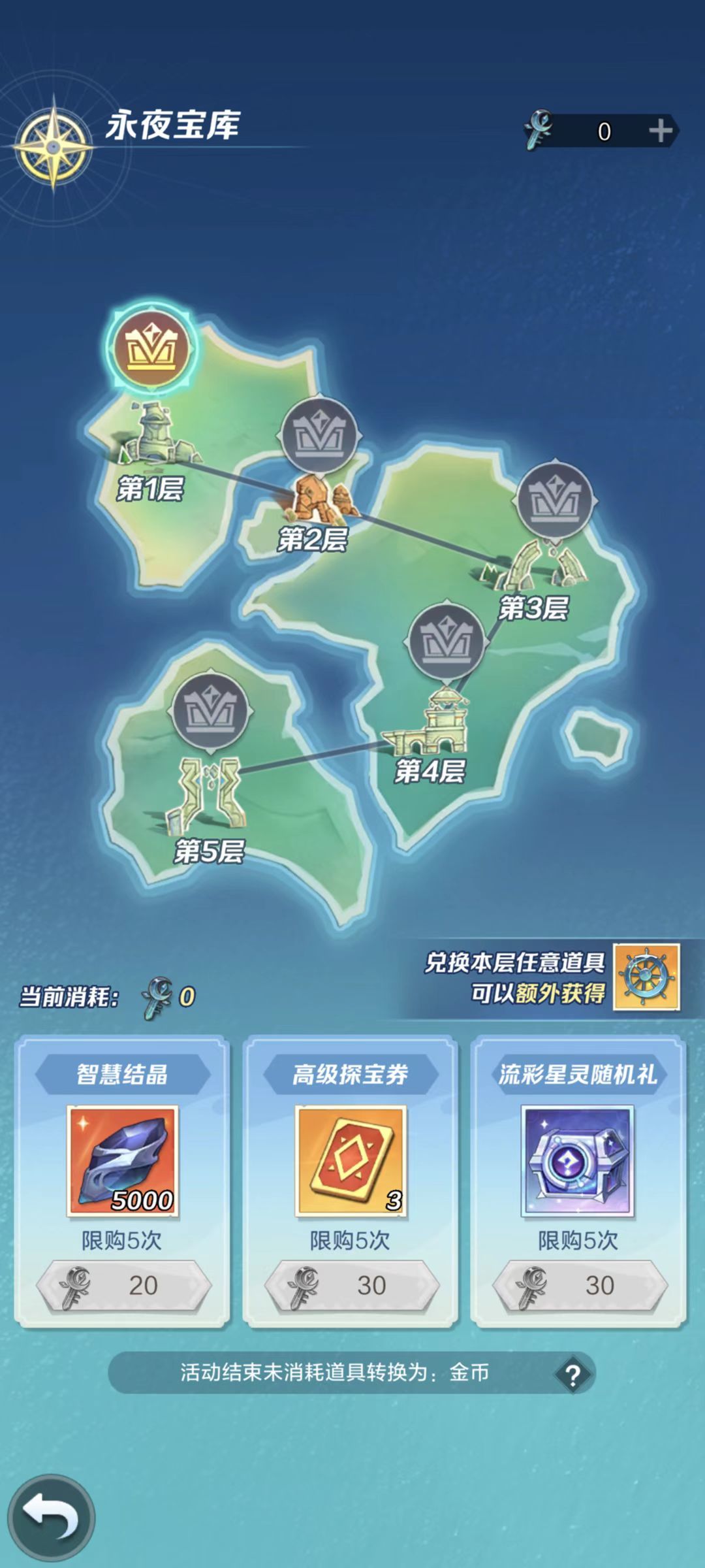船钥兑换奖励的地方,每一层有不同价值的商品,需要一定门槛才能开启下一层。