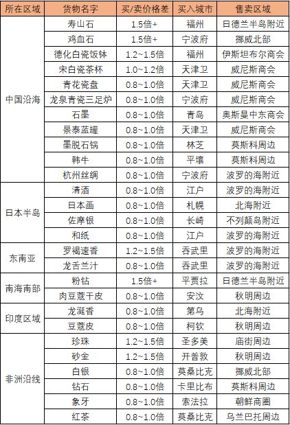 2. 核心路线返程:从欧洲出发,几个重要的区域和城市收集,然后沿着非洲航线,收集非洲的钻石、象牙、珍珠等,到中国沿海区域售卖,也可以获得相当多的利润。