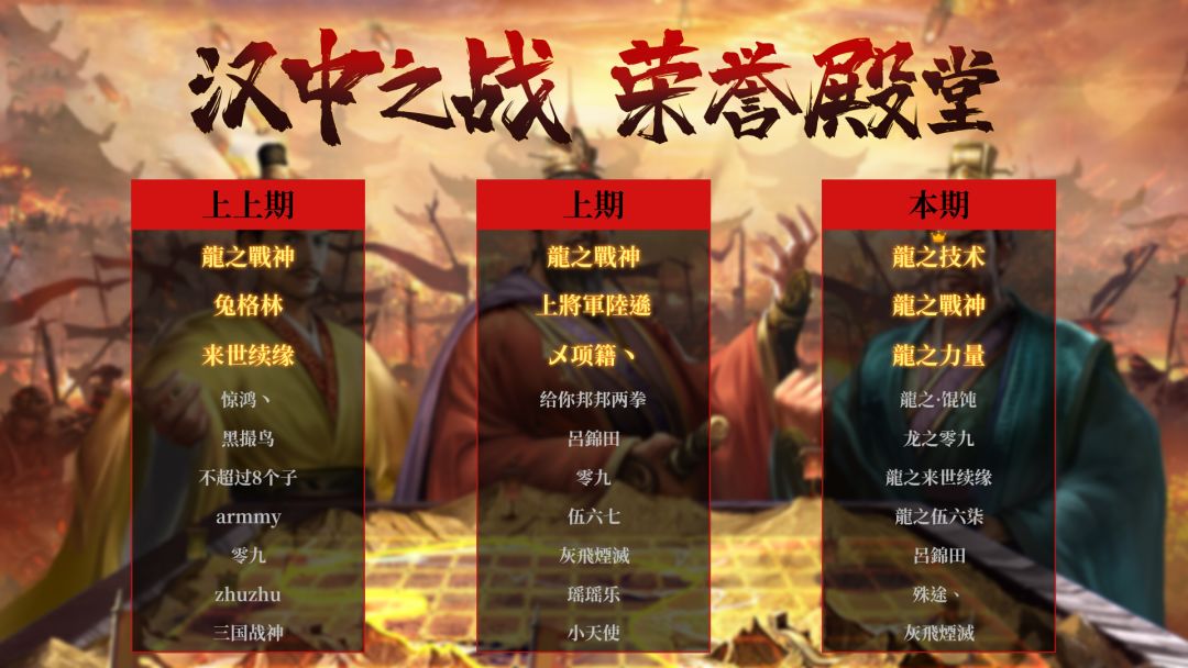 荣誉殿堂|汉中之战排行榜!