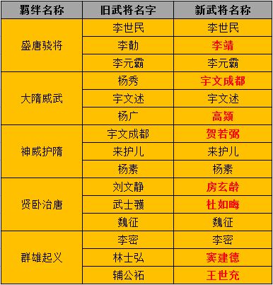 游戏测试以来部分玩家向我们反馈武将名字、势力、羁绊等不合适,不符合历史人物定位。我们接受了玩家的建议,决定对部分武将进行更名和调整,调整方式主要是名称、势力更换,对于武将技能不会有任何更改,这次的调整也是为了更符合隋唐时期的历史和人物定位,未来我们游戏也会按隋唐的历史轴来开发游戏进度,让玩家能亲自感受到隋末唐初时期的历史,更能感受到盛唐时期天朝的骄傲,未来赛季还会开放收复高句丽、琉球、吐谷浑等一系列玩法,希望大家能期待并陪我们一路走下去,一起攻城掠地,策马奔驰,纵横天下!