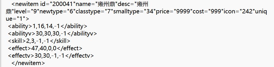 说明:每个武将的信息从结束。复制这段信息就可以批建物品啦,但是起码需要修改名字(name)和自建物品ID(newitem id)哦(自建物品ID从200000开始)。