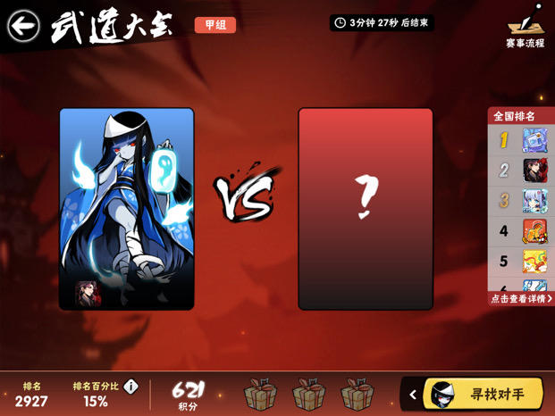 琳武道会极限后追,从290追到621,打到621已经马上结算了,真的紧张最后几局
