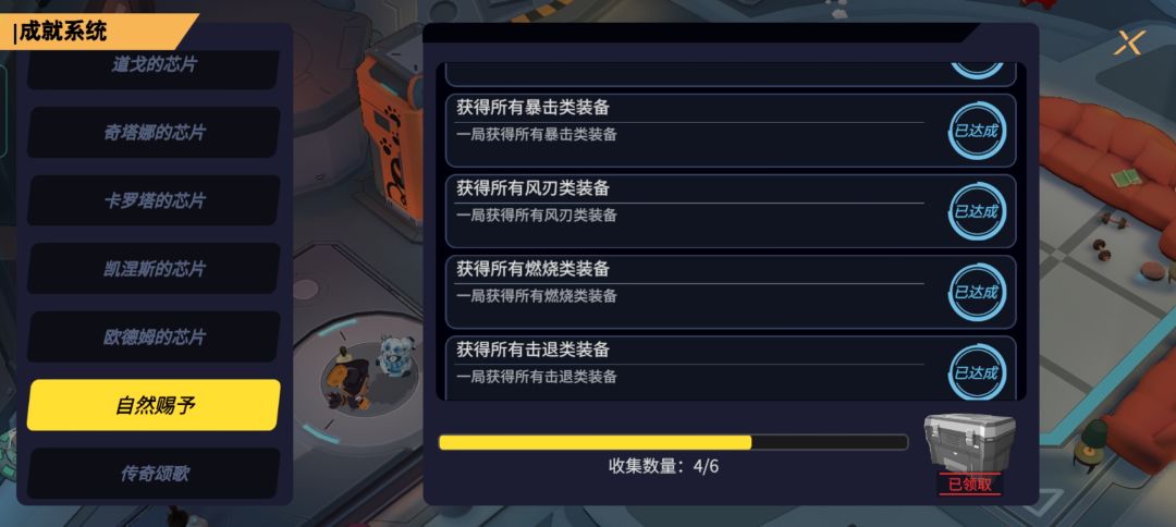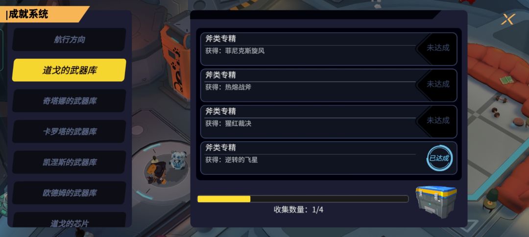 比如武器,我豹子和狗都是三把武器,成就一个1一个2。