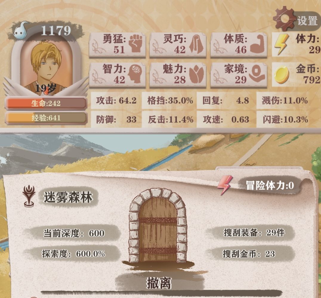 接下来就是漫长的打怪升级刷装备的流程,迷宫中尽量走篝火路线休息回复体力,一般一局能刷20-30装备: