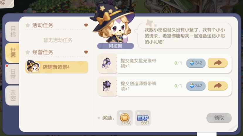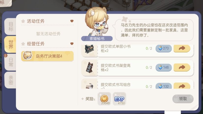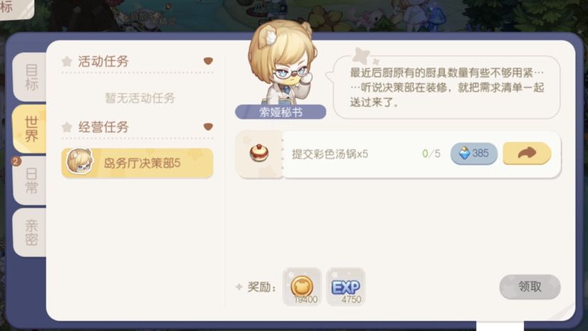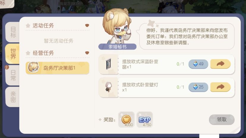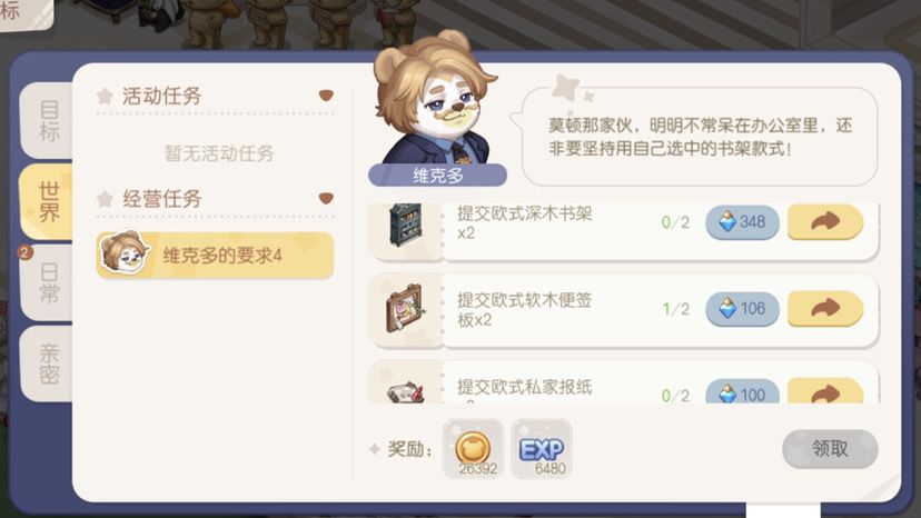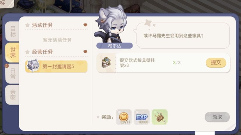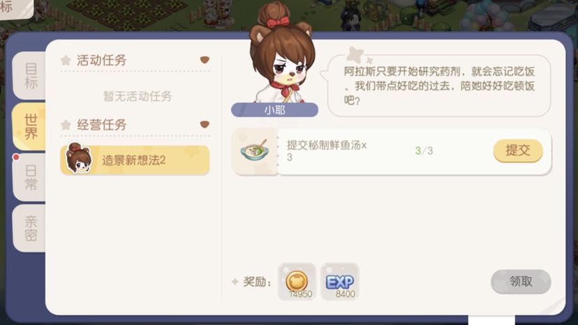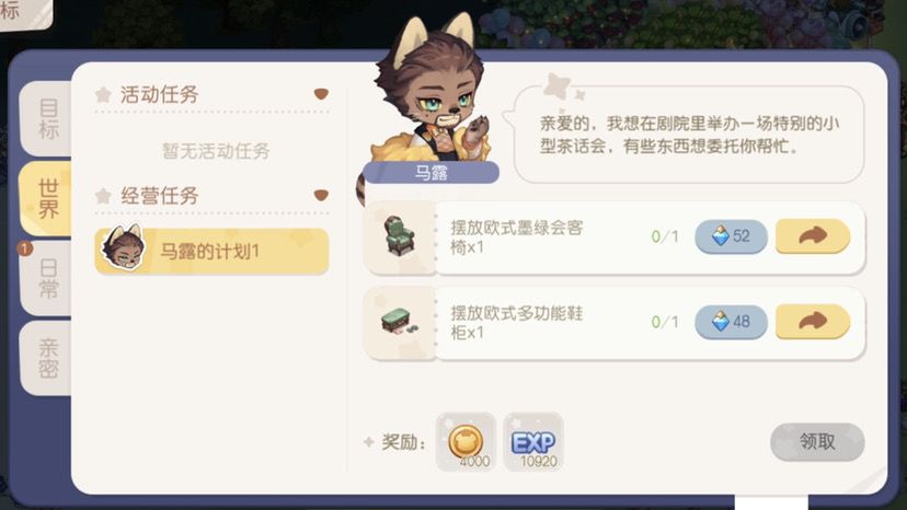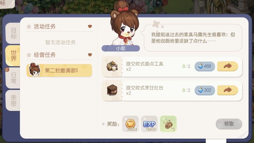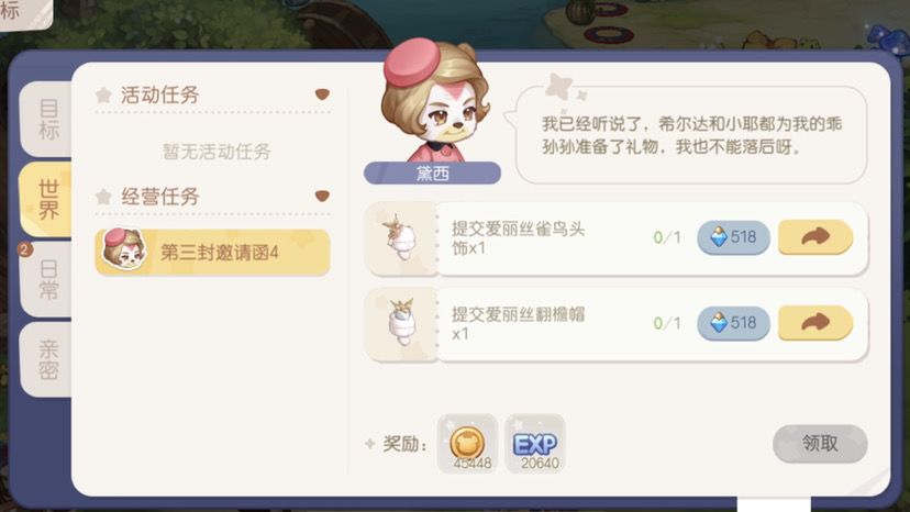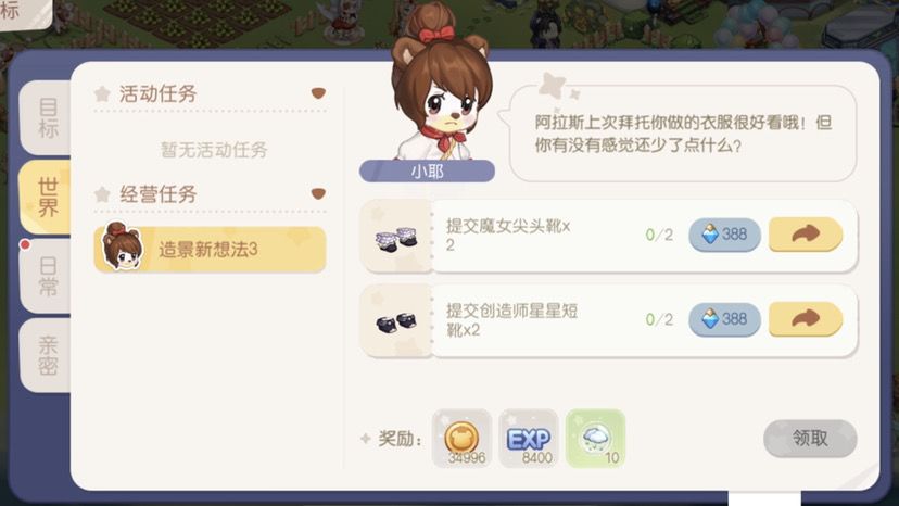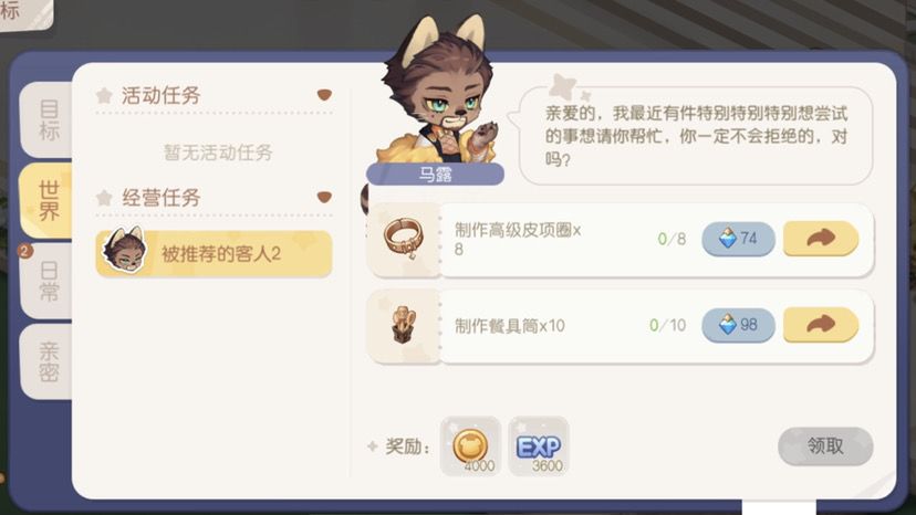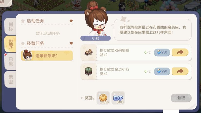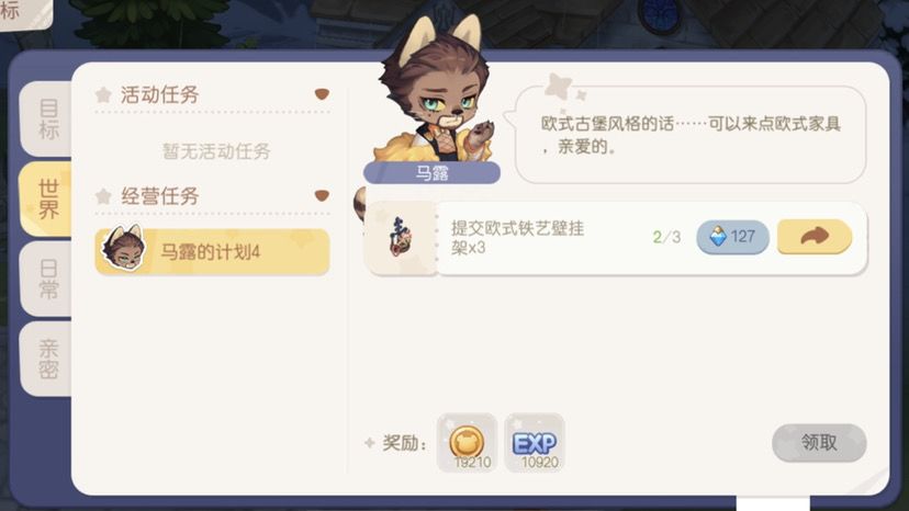 一,世界任务不是必做,很耗费材料,且亏大本的,所以小奥比自己掂量做不做。单纯要背包材料的可以直接选择用蓝钻开,更划算。