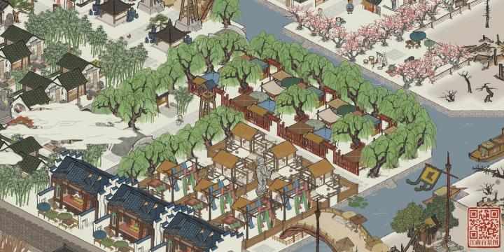 图1桃花岛居民娱乐区.图2垂柳园纺织集市区