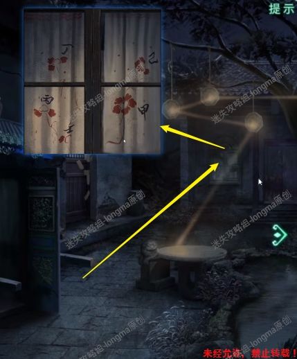 7.来到左边的院子中,查看正前方房子窗户,记住上面的图案。7