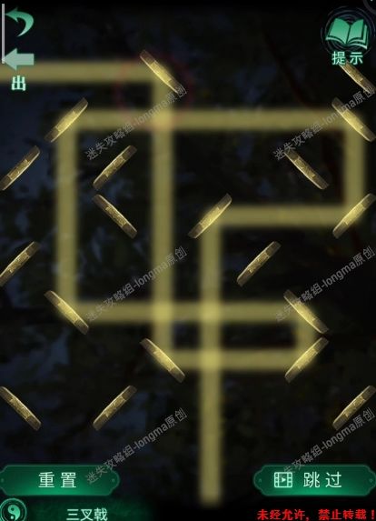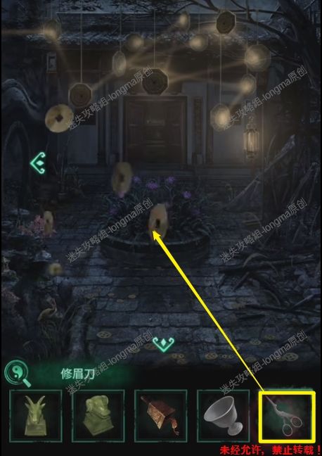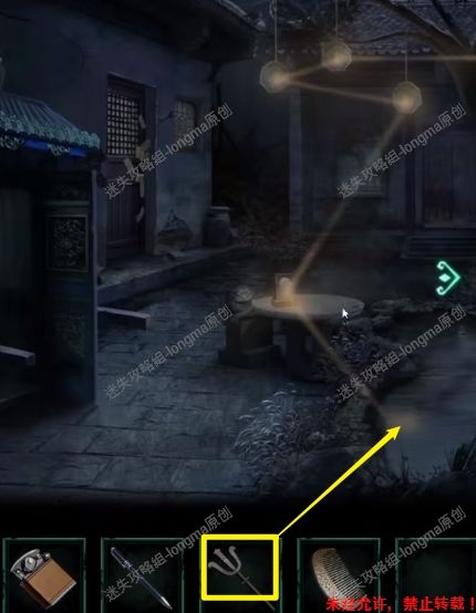 6.使用【三叉戟】点击院子中吊起来的镜子,如图6.1完成小游戏。6 6.1