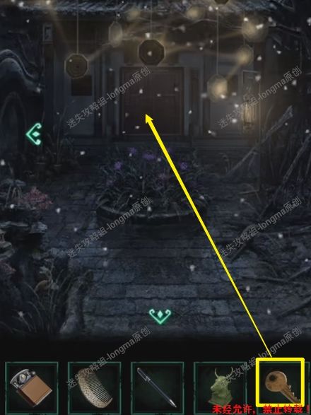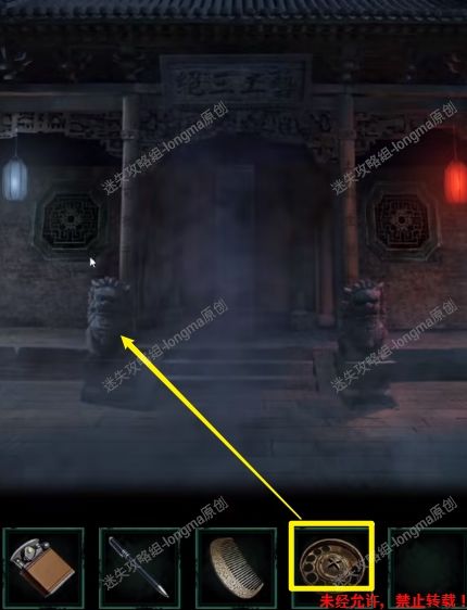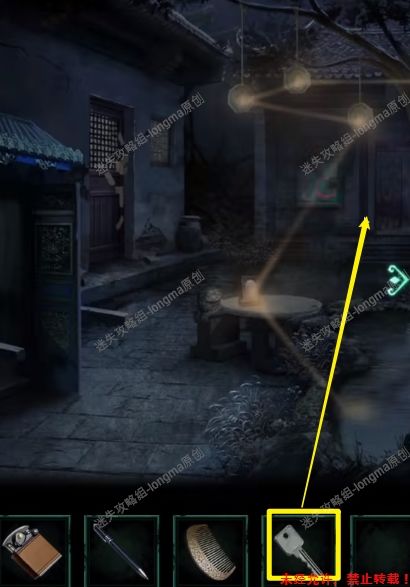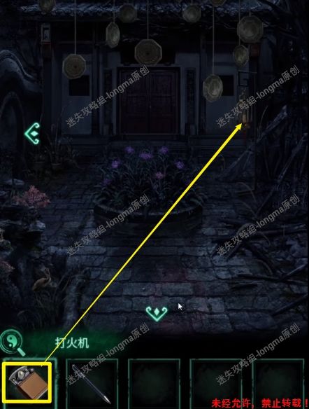 1.使用【打火机】点燃门左右两边的灯笼。1