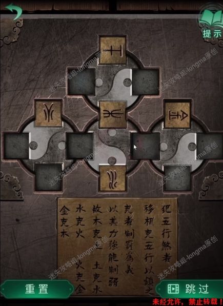 18.查看右边的柜子,对照下面的五行相克原理(木→土→水→火→金→木),将金色方块调整到被克制的底座上方,如图18.1打开柜子获得【铃铛】。18 18.1