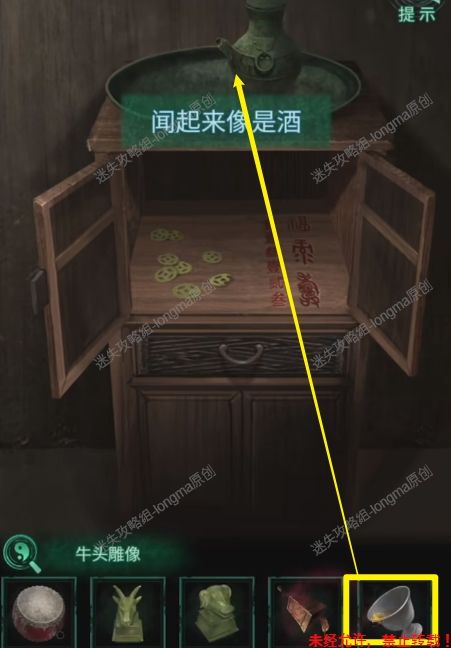 12.查看地上的纸人,在中间的纸人旁边获得【牛头雕像】。12