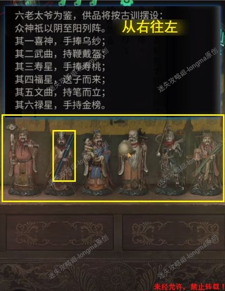 26.点击神案上的雕像,对照书中的信息,将【红圆珠笔】放入文曲星手中,并从左往右依次摆放雕像。26