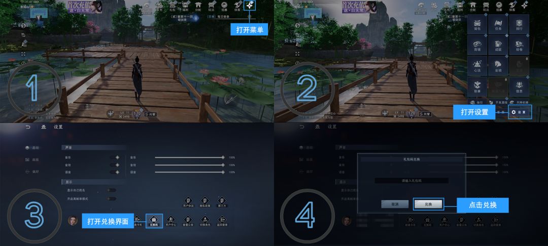 游戏内兑换码的兑换路径为:登录游戏-点开“菜单”按钮-点开“设置”按钮-点击“兑换码”-于“兑换码”界面填写进行兑换。