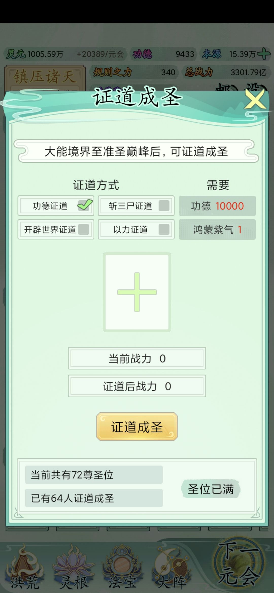 总体感觉,一,妖族还是最强的,双帝太bug,还有阵法加成仅次于截教,截,巫次之,主要培养这三教就可以了,战力提升更快。二,紫气太缺,希望可以提高紫气的获取,通关了圣位都没满,而且后期成圣已经没什么大用了;三,可以加强人物这方面,比如技能啊,新人物啊,特性之类,不然也就是人名不同而已。