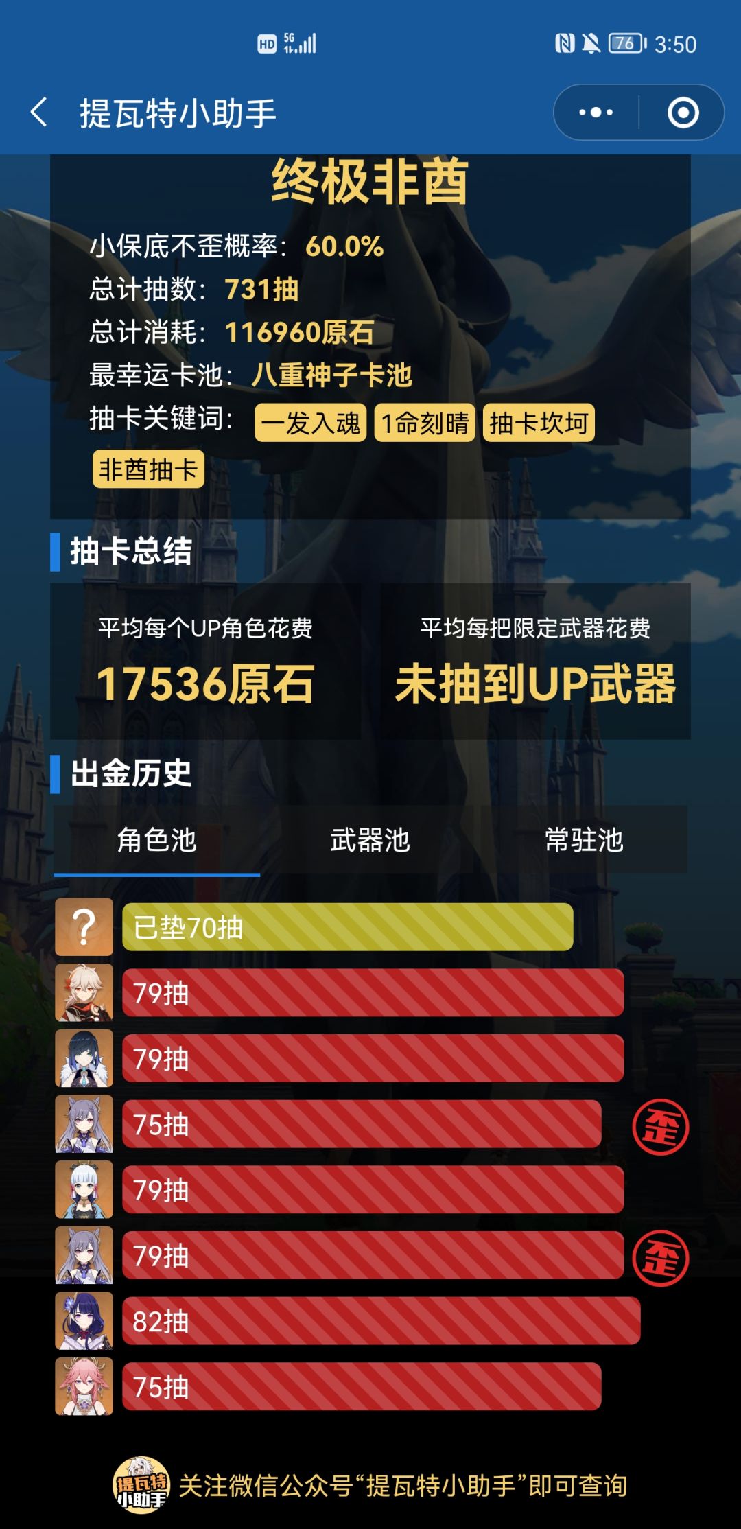 我又回来了,刚才大佬指点,这次发长帖。我也是大小月卡党,玩到现在这抽卡属实有点搞心态,所以想看看大佬们抽卡,太欧的就别来了,我吃不消!!