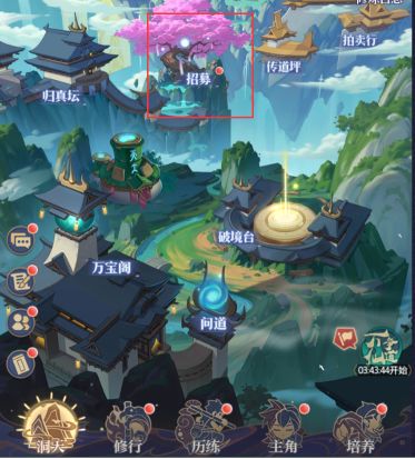 招募位于(如下图)洞天中间的位置,点击即可进入。
