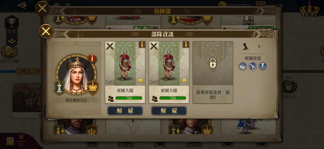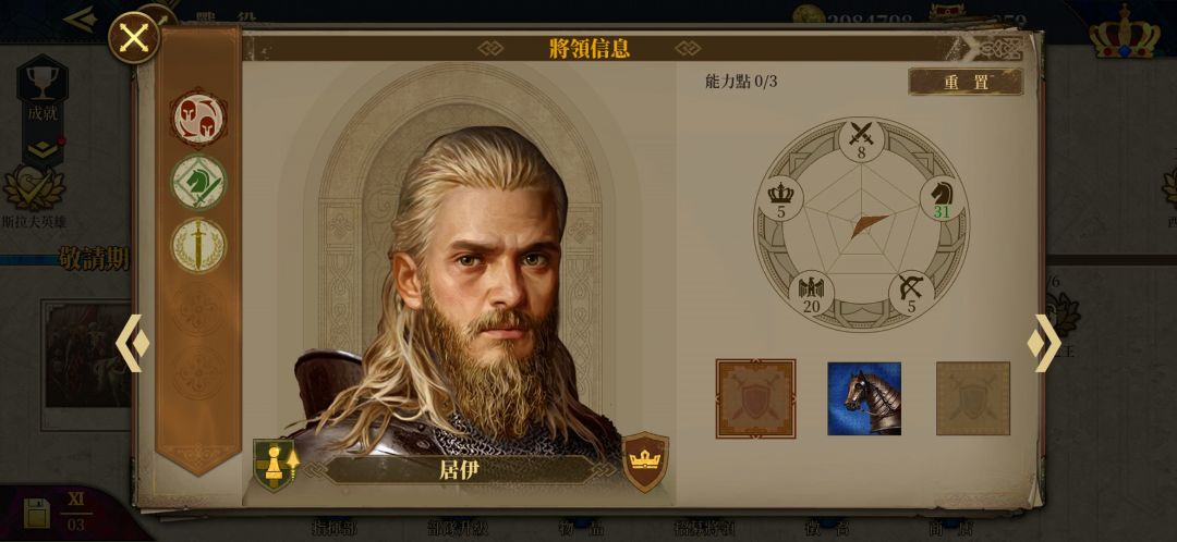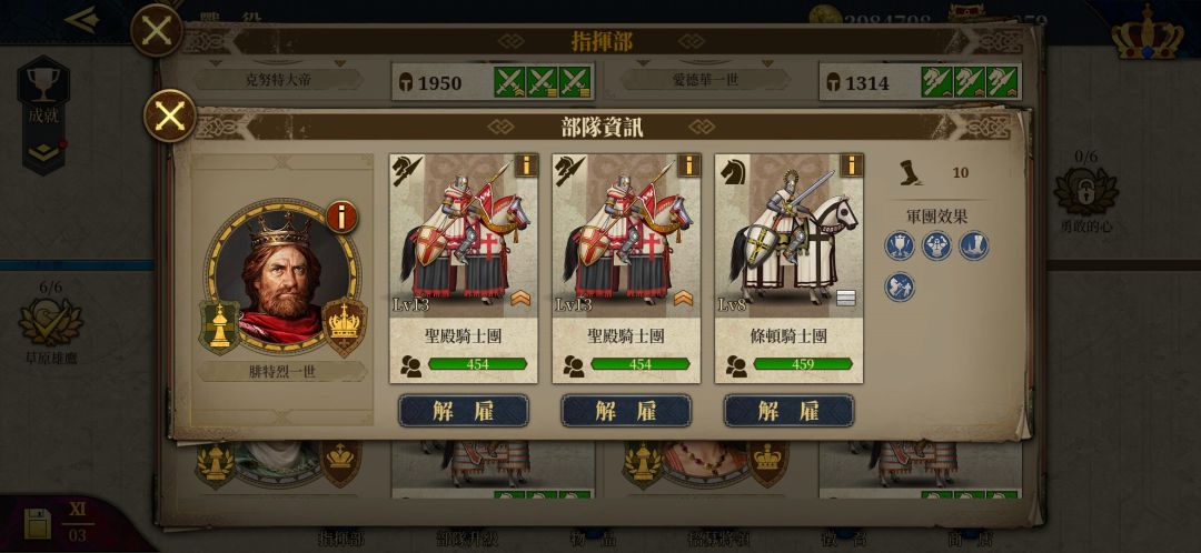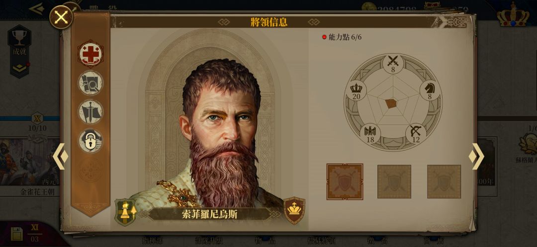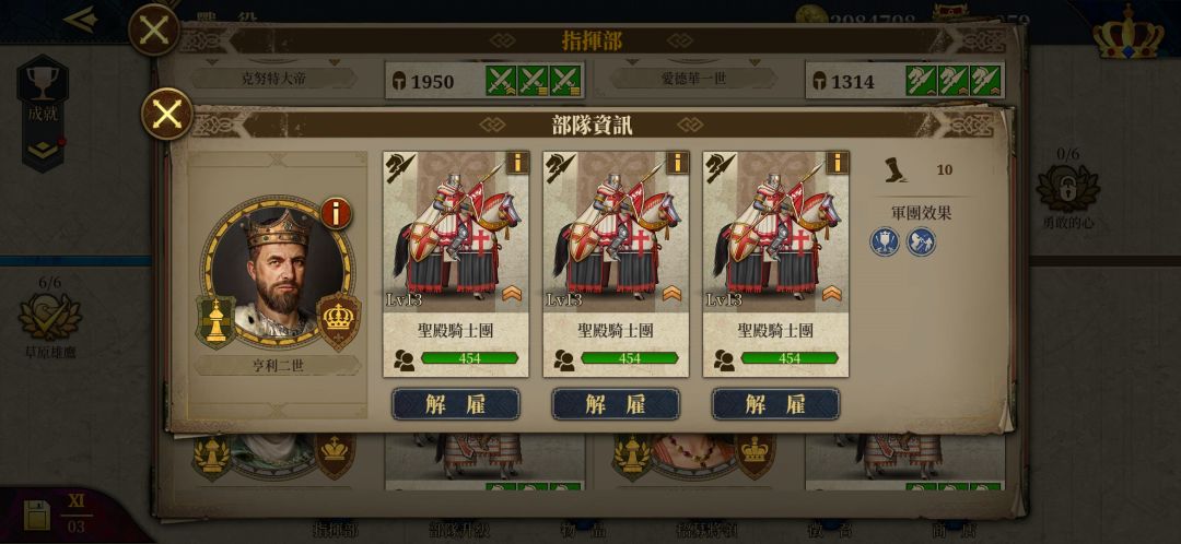 三个二级医疗,可用医疗书(领地商店320银币)升到三级,目前三级医疗是最高了。其中头巾哥是金币将。埃莉诺是银将,600多勋章。佳妮薇儿是亚瑟王送的。