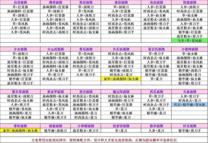 美容室的发型和面膜攻略。集齐后升级我全用泰坦+颜料+刮胡刀,会获得众多小灯泡。