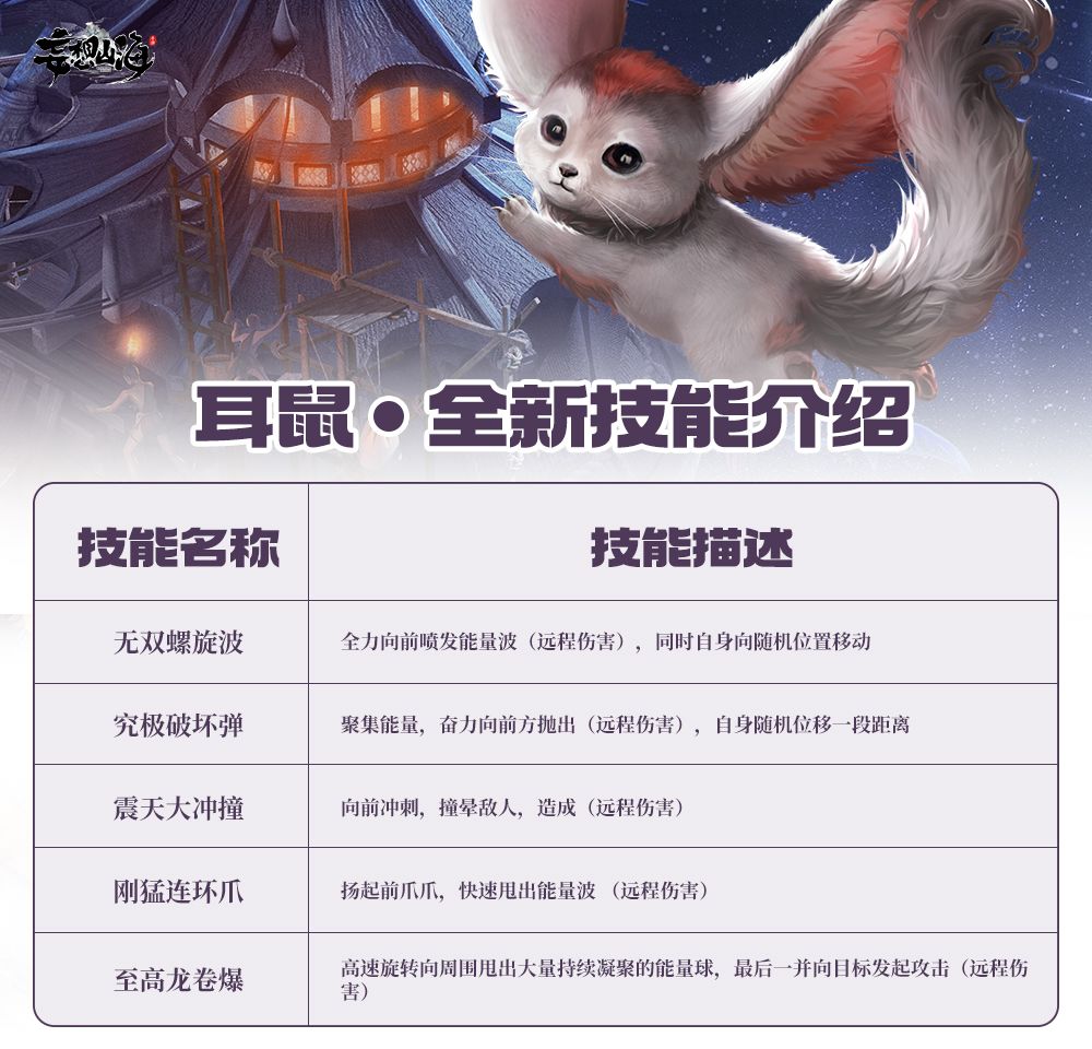 除了技能重做之外,我们的老朋友耳鼠也将在本次新版本中得到优化——其技能拥有了各自专属的名称,具体技能描述如下: