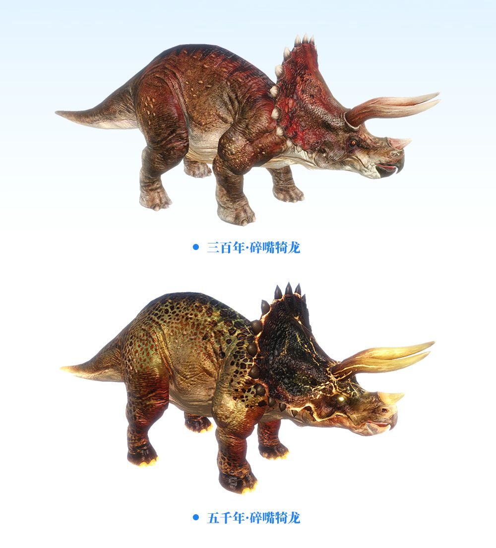 tips:所有恐龙都可从低档位蜕变提升年份档位,随着年份档位变化,其外观也会发生变化哦~