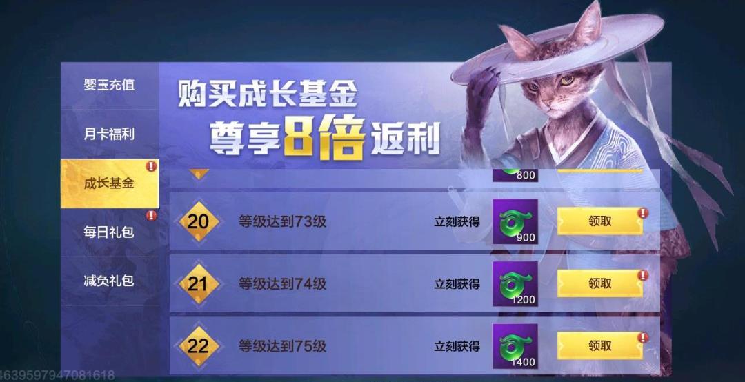 第二阶段从66级开始,至75级结束,旅者每提升一级便可领取对应脂玉返利,依旧是熟悉的超高收益率,98元尊享8倍返利,总计获得980婴玉+7000脂玉!