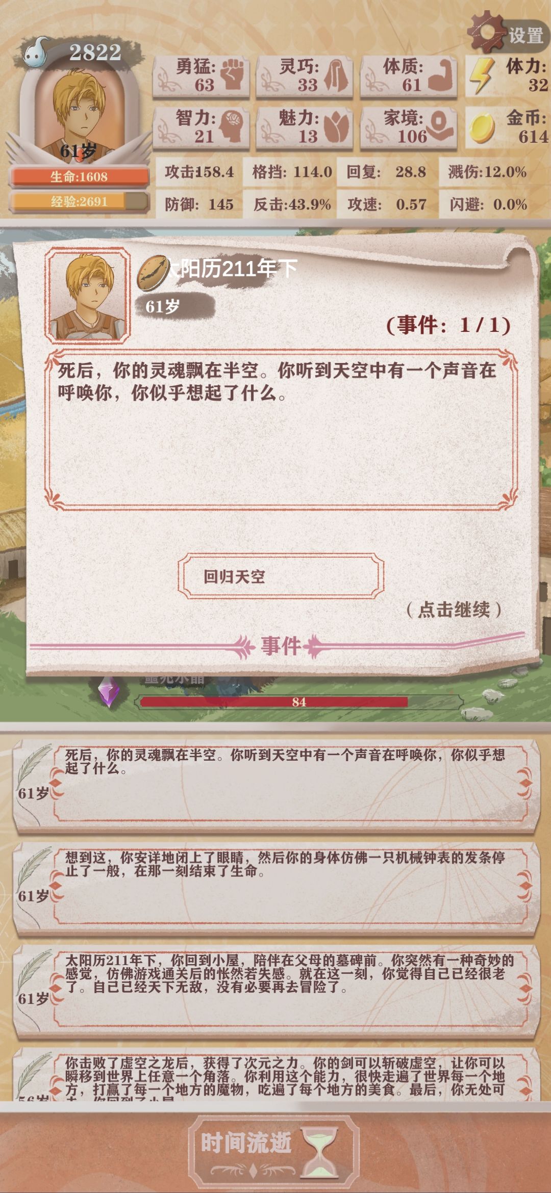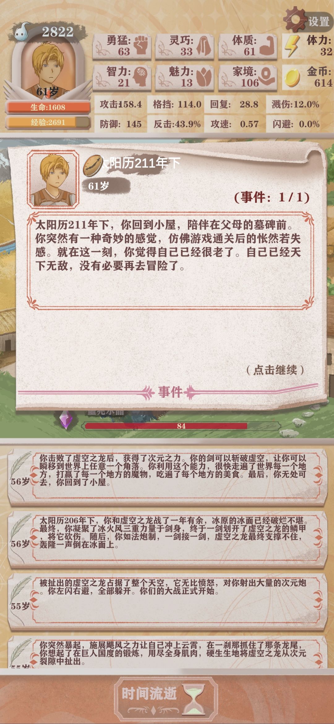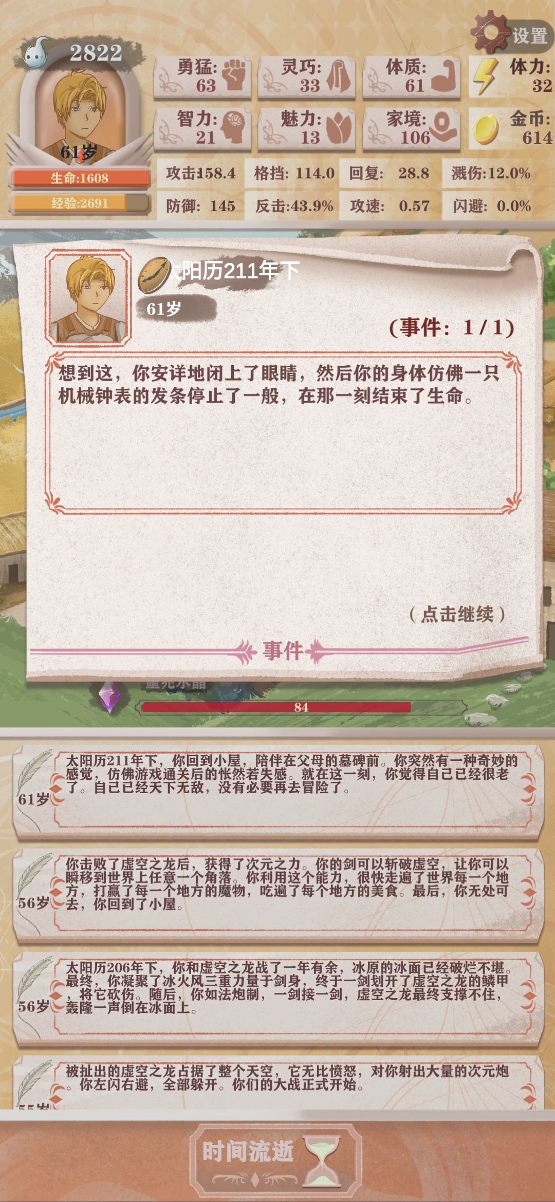 这游戏玩了一天就通关了,我认为最简单的通关方法:◆开局点石成金天赋,效果:自动加家境=金币,不想麻烦浪费体力或者钓鱼赚金币就出这个天赋直接莽副本。