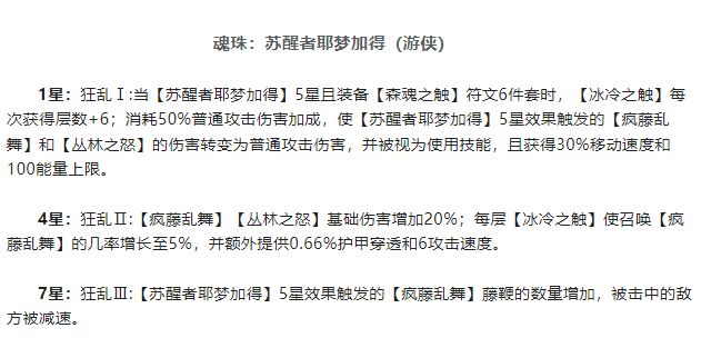 所以对于疯藤来说,耶梦加得达到四星的时候马上转去做魂珠,立马做1星游侠耶梦加得魂珠,然后在升到4星,7星不着急