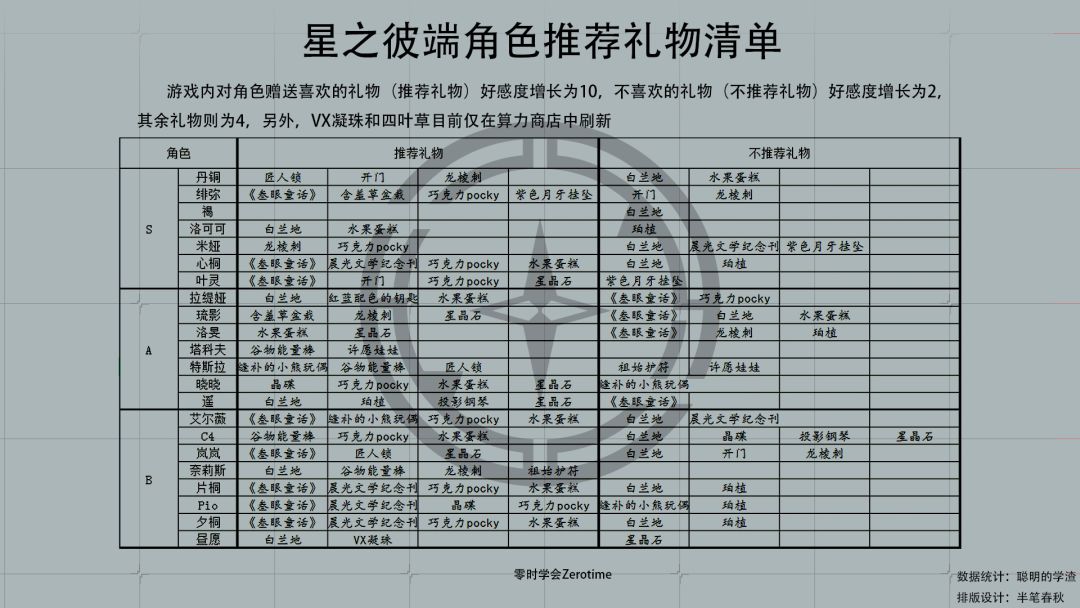 不少小伙伴在要,就赶着汇总整理了一下有关礼物好感度的数据,有错误欢迎指出