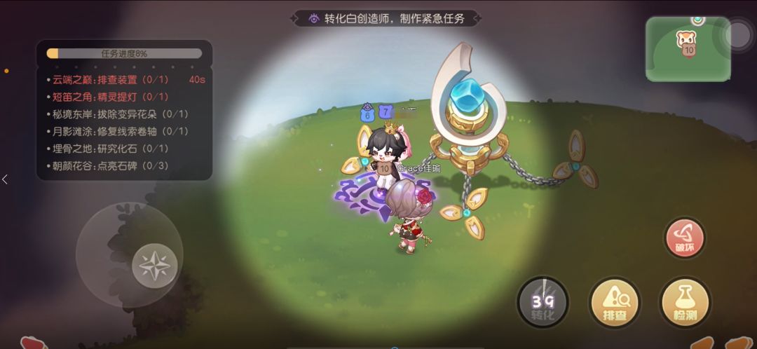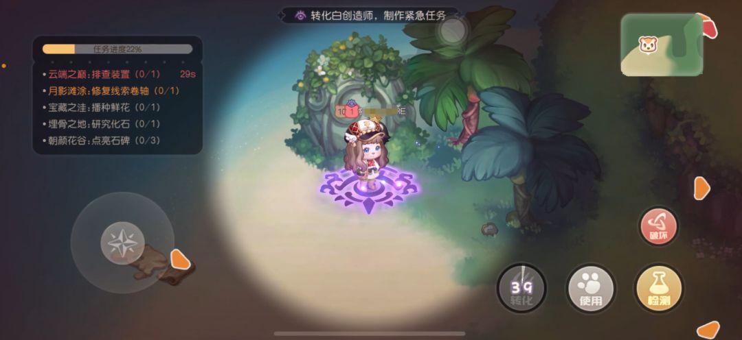 6、在大家都赶去做紧急任务时,用藤蔓把附近落单的白创造师困住并转化Ta,之后迅速跑路。