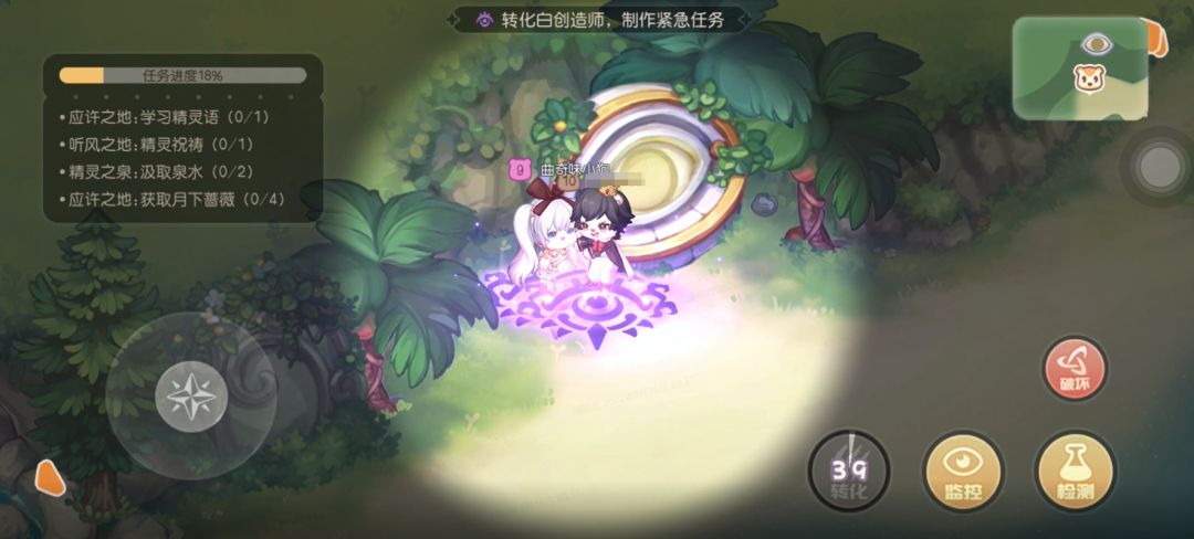 10、除了做任务时,可以经常转动左下角的方向盘,黑创造师需要贴很近才能转化,只要走位够好就不容易被转化。
