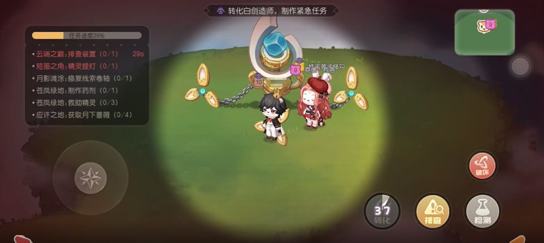 2、远程启动“云端之巅”的能量体检索装置和精灵提灯黑雾有冷却时间,但在装置前可以手动破坏。手动破坏后可以站在那里不动,装作刚赶来做紧急任务。