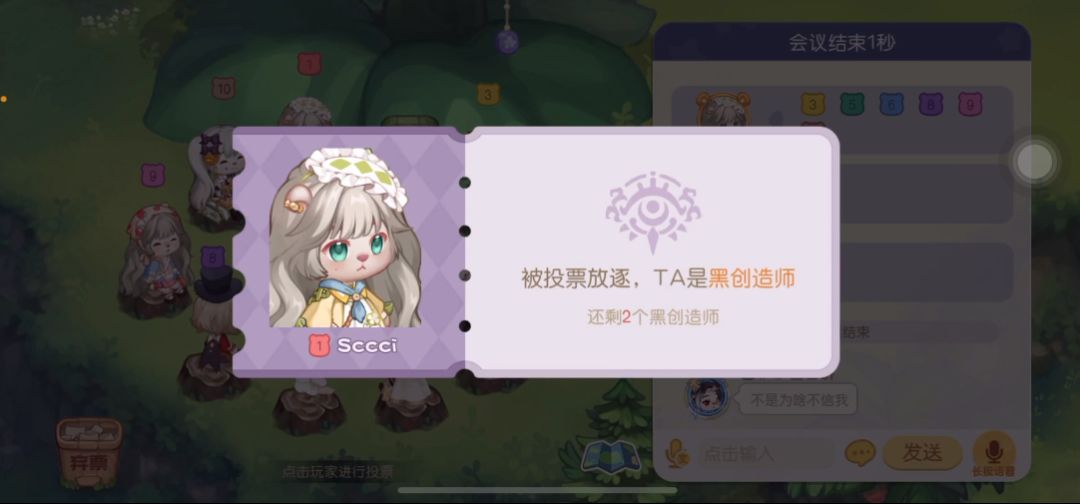 5、有明确证据说某人是黑创造师时,大家可以集体投Ta,若此时有一个人并没有投Ta,很有可能这个人是黑方的同伙。