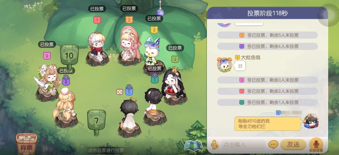 4、如果其他人投了自己的队友,在投票时可以假装掉线挂机,等读秒结束后自动弃权,这个办法相比于弃票会减小别人的怀疑。