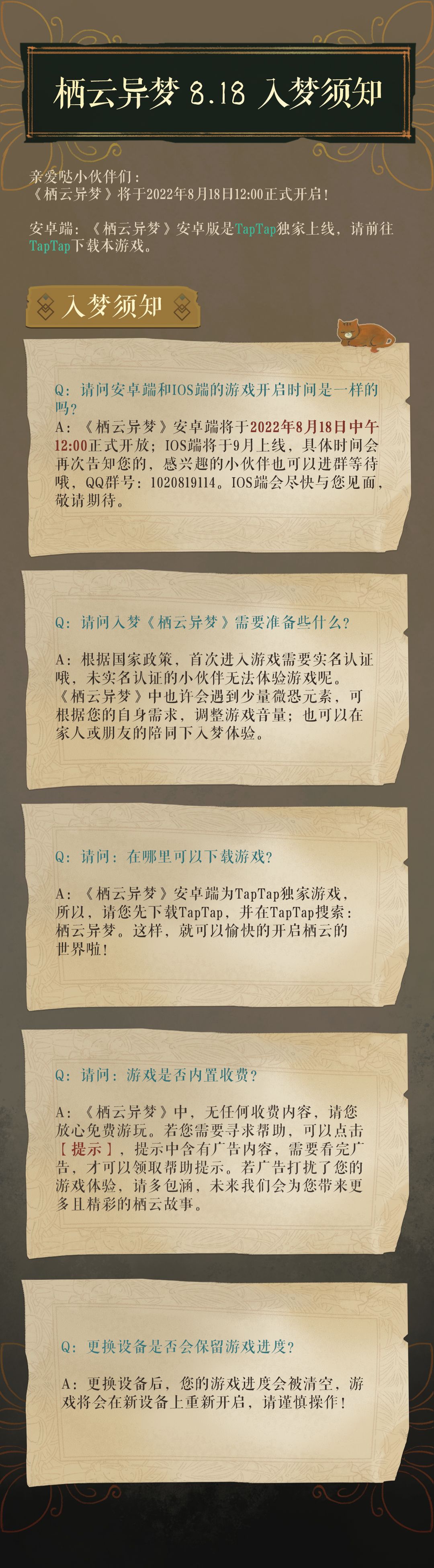 倒计时一天!《栖云异梦》将于2022年8月18日12:00正式开启!
