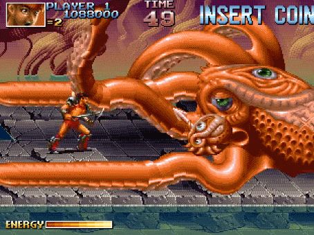 《刀锋领主》这款街机游戏在国内相对有一点冷门,但它其实和大名鼎鼎的《铁钩船长》出自同一厂商IREM,这款游戏发行于1991年,游戏的画风和气氛都非常诡异,还很喜欢以一些软体动物为原型设计BOSS,视觉冲击力极强,比如第五关的大章鱼和最终关的美女蛇,让当年还不知道克苏鲁为何物的玩家毛骨悚然!